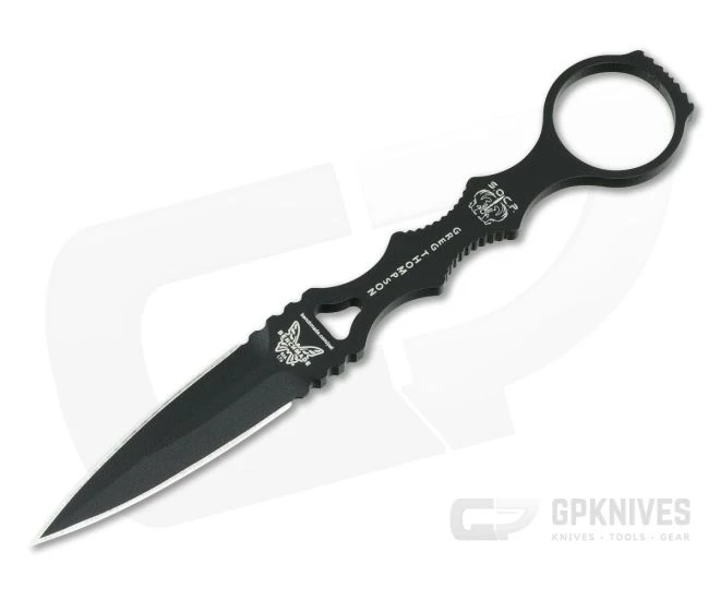 Designed by Greg Thomson, creator of the Special Operations Combative Program (SOCP), the Benchmade SOCP is a specialized defensive tool that allows the user to maintain retain the knife in hand while manipulating other objects. This powerful tool has a minimal footprint for lightweight and discreet carry, with an optimized sheath for secure carry and fast deployment. This version is a plain double edge with black sheath.