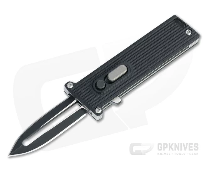 Tactically inspired and daily carry ready, the D Rocket Design Tallin is a single action out-the-front automatic with a California legal size and simple, rugged construction. Fun and functional, the Tallin is another quintessential D Rocket design. This blackout version comes with a two-tone M390 blade, stainless steel liners and black G10 handle scales.