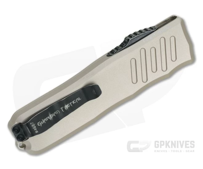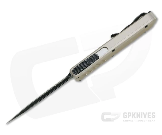 The Recon-035 is a modern and innovative, double action, out the front automatic that is perfect for everyday carry. With patented steel thumb slide base and floating blade construction the Recon-035 is smooth and reliable in its operation while having minimal play and a rock solid feel. This version comes with a dark stonewashed, partially serrated, double edge Elmax blade, black hardware and desert tan handle.
