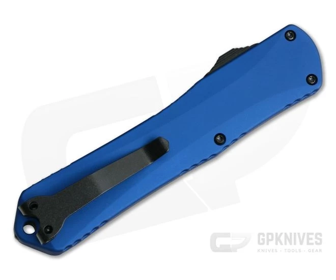 The Heretic Knives Manticore-X is the largest of the Manticore Series of double action, out the front, automatic knives. The Manticore-X has a countered, 3D machined, aircraft grade aluminum handle with strategically placed scallops around the edge that delivers a comfortable and secure grip in the hand. This version comes with a double edge, black stonewashed finished, CPM S35VN blade and blue anodized handles.
