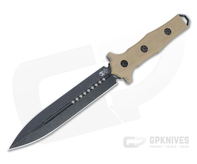 The Nephilim were fearsome giants or fallen angels, depending on the translation, and were ordered somewhere between the human and divine. The Heretic Nephilim is large and awe-inspiring as befits the name with a massive +5 mm thick dagger blade and striking milled handles all coming it at just under a foot in length. The Nephilim will stand out in any collection and makes for an imposing tool. This version comes with a Battleworn black Cerakote coated Elmax blade and flat dark earth (FDE) G10 handle scales.