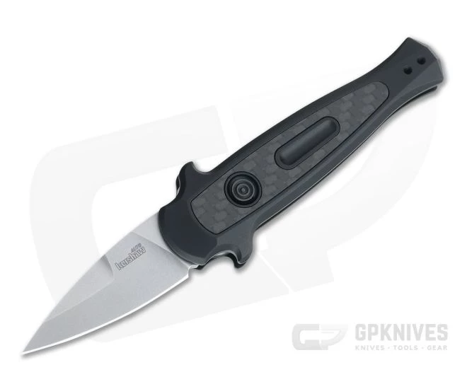 Scaled down from the Launch 8 but still packing plenty of punch in terms of style, performance and value, the Launch 12CA delivers a California Legal mini Stiletto with the same modern materials and aesthetic. Snappy coil spring operation paired with the ultralight weight and compact size make the Launch 12CA a perfect companion wherever your day takes you. This version has a stonewashed CPM-154 blade and black handles with Carbon Fiber inlay.