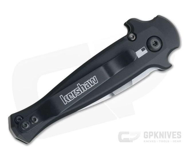 Handle: Contoured aluminum handle scales are hard anodized black and machine contoured for grip. A carbon fiber inlay adds style while the handle design provides ergonomic comfort and ease of carry. The pommel end comes to a classic coffin shape while the top of the handle is equipped with dual finger guards for added safety. The button lock mechanism is rock solid, smooth and simple to operate. Made in the USA, Kershaw has laser-engraved the American Flag on the back of the handle.