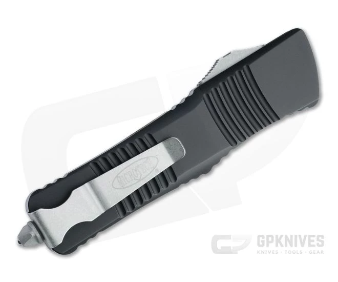 The Double Edge Combat Troodon out-the-front automatic knife by Microtech is a substantial tool, popular among military, law enforcement and first responders. Its large size lends itself to situations requiring a more robust cutting tool while remaining slender enough to keep on your person daily. Like its bird-like dinosaur namesake this Troodon is ready to strike. This version comes with an Apocalyptic M390 double edge blade and black anodized aluminum handles.