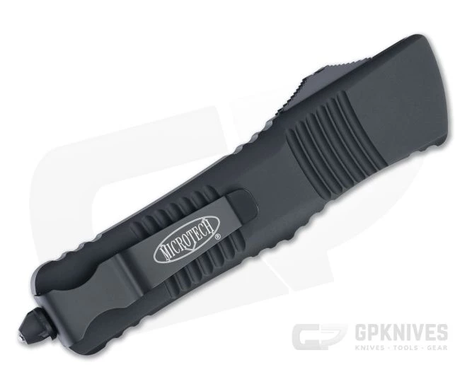 The Combat Troodon double action out-the-front automatic knife by Microtech is a substantial tool, popular among military, law enforcement and first responders. Its large size lends itself to situations requiring a more robust cutting tool while remaining slim enough to keep on your person daily. Like its bird-like dinosaur namesake, this Troodon is ready to strike. This double edge Tactical version comes with a partially serrated, black Cerakote coated, M390 double edge blade, black anodized aluminum handles and matching hardware.