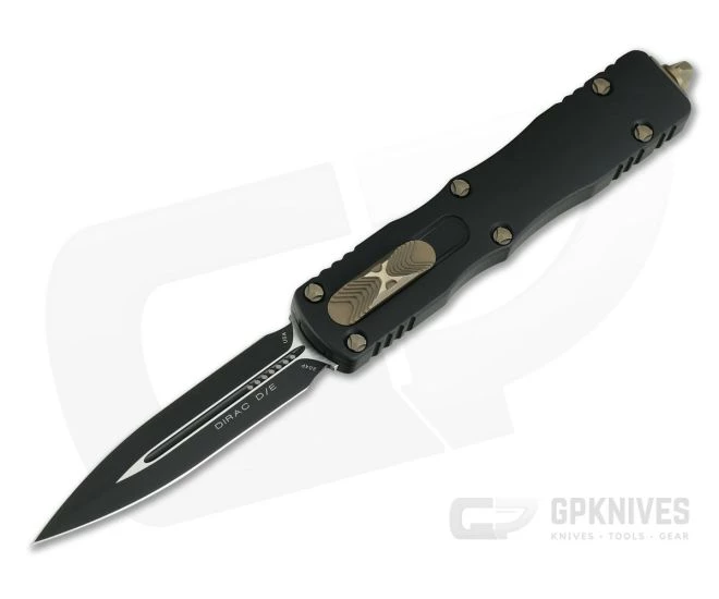 The Microtech Dirac takes the contours of the Halo, the size of the UTX-85 (just a bit smaller) and a top slide design and blends them together for a fantastic new every day carry auto from Microtech Knives. The double edge and top slide combination also make this Dirac fully ambidextrous, perfect for right or left-handed users! This Proof Run is an individually serialized first production run with Bronze Hardware, Black handles and Black CTS-204P Double Edge blade.