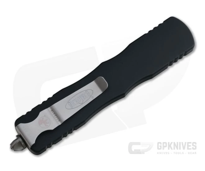 Handle: The generous handles accommodate the largest of hands even in gloves. Contoured, black coated 6061-T6 aluminum delivers an ergonomic and comfortable feel in-hand as well as a visually appealing shape. Strategically placed machine-grooved texturing on both edge enhances traction in hand while construction is completed with Microtech’s proprietary hardware, glass breaker end and pocket clip all in a matching Gray Finish. The clip is marked with individual serial number and date of production.
