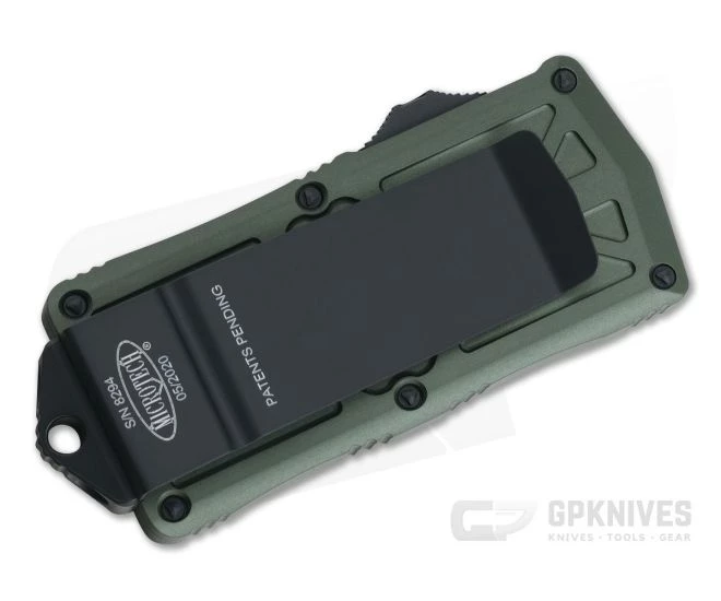 Handle: Smooth, OD Green coated 6061-T6 aluminum has rounded edges with texturing holds creating not only a comfortable feel in-hand but a smooth transition in and out of your pocket. The bonus widened “money” pocket clip adds a bit of gentleman to this OTF automatic. Ergonomic and contoured, the handle’s construction is completed with Microtech’s proprietary hardware, looped hole end knocker and clip with individual serial number/date of production.