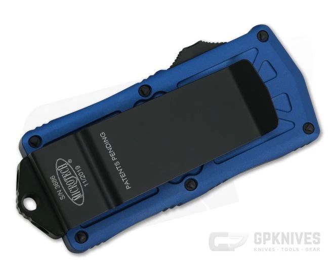 Handle: Smooth, Blue coated 6061-T6 aluminum has rounded edges with texturing holds creating not only a comfortable feel in-hand but a smooth transition in and out of your pocket. The bonus widened “money” pocket clip adds a bit of gentleman to this OTF automatic. Ergonomic and contoured, the handle’s construction is completed with Microtech’s proprietary hardware, looped hole end knocker and clip with individual serial number/date of production.