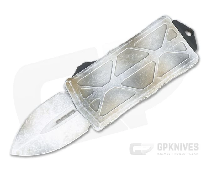 The California Legal Exocet is a compact double action out-the-front automatic knife from Microtech ideal for everyday carry. The small size is perfect for watch pocket carry, and the large pocket clip doubles as a money clip. This Signature Series “Sandtrooper” version has a double edge blade and aluminum handle both in distressed desert Stormtrooper camo with black hardware and clip.