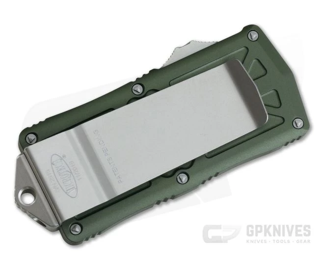 Handle: Smooth, OD Green coated 6061-T6 aluminum has rounded edges with texturing holds creating not only a comfortable feel in-hand but a smooth transition in and out of your pocket. The bonus widened “money” pocket clip adds a bit of gentleman to this OTF automatic. Ergonomic and contoured, the handle’s construction is completed with Microtech’s proprietary hardware, looped hole end knocker and clip with individual serial number/date of production.