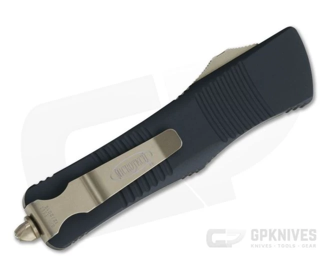 Handle: Robust, hard anodized, aircraft-grade alloy offers just over 4.25 inches of handle, excluding the breaker, substantial enough for large hands without becoming cumbersome in the pocket. The knife is comfortable in the hand, with contoured edges, while wide sections of jimping are perfectly placed for a secure grip. It is built with proprietary Bronzed Microtech hardware, integrated glass breaker end and pocket clip.