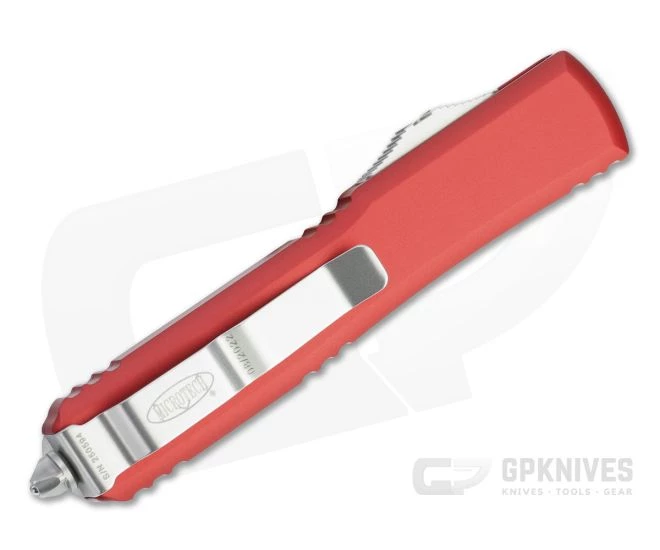 The Ultratech double action out the front automatic knife from Microtech sets the standard for the category. With a sleek yet rugged design, precision American made construction and premium materials the Ultratech is a perfect everyday carry companion. This version has a contoured red aluminum handle and stonewashed M390 Bayonet blade.