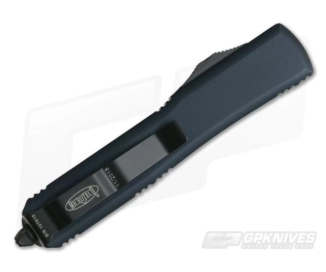 The Ultratech Tactical dual action out the front automatic knife from Microtech sets the standard for the category. This version has Blacked Out construction and a partially serrated Double Edged dagger-styled blade.