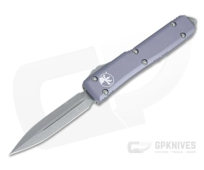 The Ultratech double action out the front automatic knife from Microtech sets the standard for the category. With a sleek yet robust design, precision American made construction and premium materials the Ultratech is a perfect everyday carry companion. This version has a contoured, gray anodized aluminum handle and an Apocalyptic CTS-204P double edge blade.