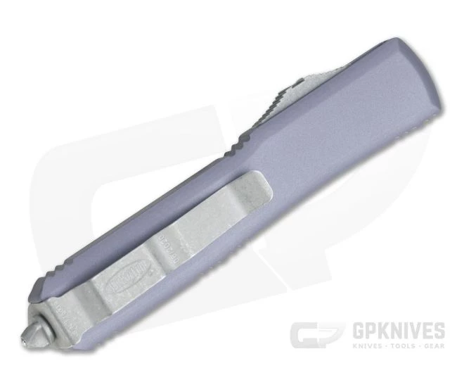 Handle: Smooth, gray anodized 6061-T6 aluminum handles have contoured edges creating a comfortable feel in-hand, smooth pocket transitions and a lighter more aesthetic design. Several areas of machine-grooved texturing around the handle add traction. Construction is completed with Microtech’s proprietary hardware, glass breaker end and pocket clip with individual serial number/date of production.