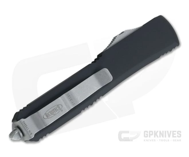 The Ultratech double action out the front automatic knife from Microtech sets the standard for the category. With a sleek yet robust design, precision American made construction and premium materials the Ultratech is a perfect everyday carry companion. This version has a contoured, Black anodized aluminum handle and an Apocalyptic M390, partially serrated double edge blade.