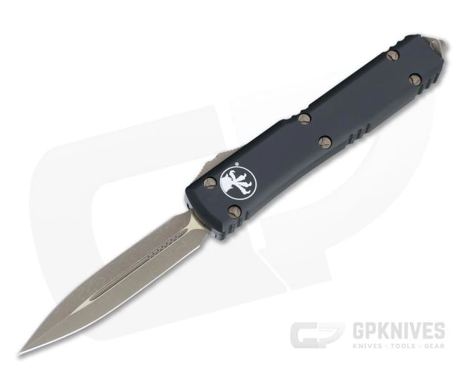 The Ultratech dual action out-the-front automatic knife from Microtech sets the standard for the category. With a sleek yet robust design, precision American made construction and premium materials, the Ultratech is a perfect everyday carry companion. This version has a black hard anodized aluminum handle and bronzed Apocalyptic double edge M390 blade with matching hardware.