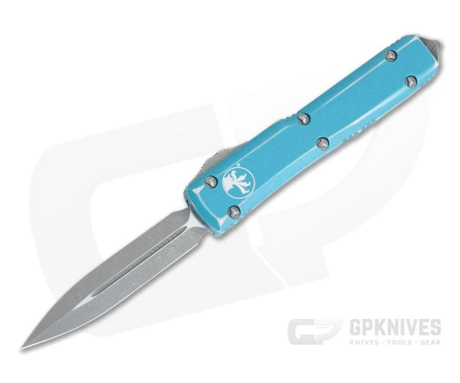 The Ultratech dual action out the front automatic knife from Microtech sets the standard for the category. With a sleek yet robust design, precision American made construction and premium materials the Ultratech is a perfect everyday carry companion. This version has a Distressed Turquoise hard anodized, contoured aluminum handle and an Apocalyptic, Double Edge M390 blade.