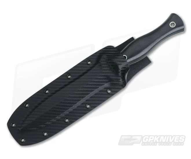 Sheath: Three layer form fitted Kydex sheath has been riveted together to form an integral belt loop for carry. Open eyelets allow use of a mounting system or lashing to equipment. The front of the sheath has a carbon fiber texture for visual appeal.