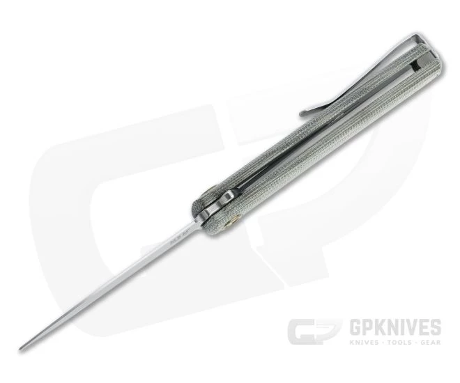 Based on his custom MS3 flipper, Michael Zieba has teamed up with Maniago Knife Makers (MKM) to offer a high quality production version in the Flame. Retaining the compact, sleek and minimalist design, the Flame provides a more accessible version with premium design and performance. The Flame Light features a nested liner lock construction and reversible deep carry clip. This version comes with green canvas Micarta scales and a stonewashed M390 dagger (single edge) blade.
