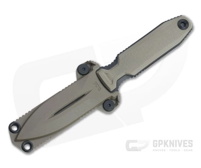 Handle: The full tang construction supports removable FDE G10 composite handles that are milled for comfort and traction in the hand. Dual guards enhance safety during serious use, while the symmetrical design allows the knife to be used in any grip or blade orientation. While offering a full sized handle, the Covert is small enough for boot carry. A generous hole is provided for lanyard attachment.