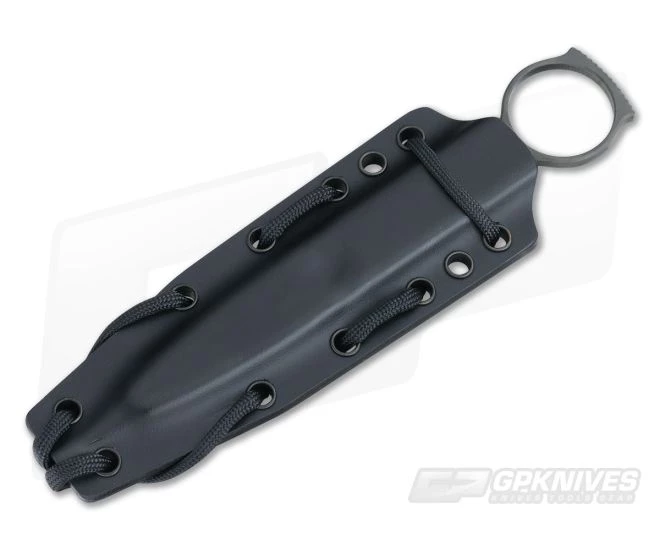 The Spartan Blades CQB (Close Quarters Battle) Tool with the DLC Black SpartaCoat finish is a “transition tool” for rapid acquisition during grappling situations. The ring and slim profile allow the user quick access in intense moments. The saber ground dagger is a full tang 154CM steel has excellent finger ergonomics and notching for a tight grip. The SpartaCoat ensures long life and durability. The dagger’s ring has an inside diameter of 1.09″ to fit most gloved fingers. The CQB comes with a form fitted black Kydex sheath with matching paracord to lash onto MOLLE/PALS. The sheath is also IWB, Tek-Lok and Mini Tek-Lok compatible (Not Included).