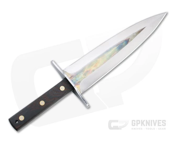 Like the Arkansas Toothpick, the SVORD Knives Hog Beater is a large, heavy dagger bordering on a short sword. As the name implies this is a pig hunting knife design though it makes a formidable combat tool with its burly construction and wide cross guard. This piece has a full tang Swedish carbon steel blade and dark Wenge wood handle scales.